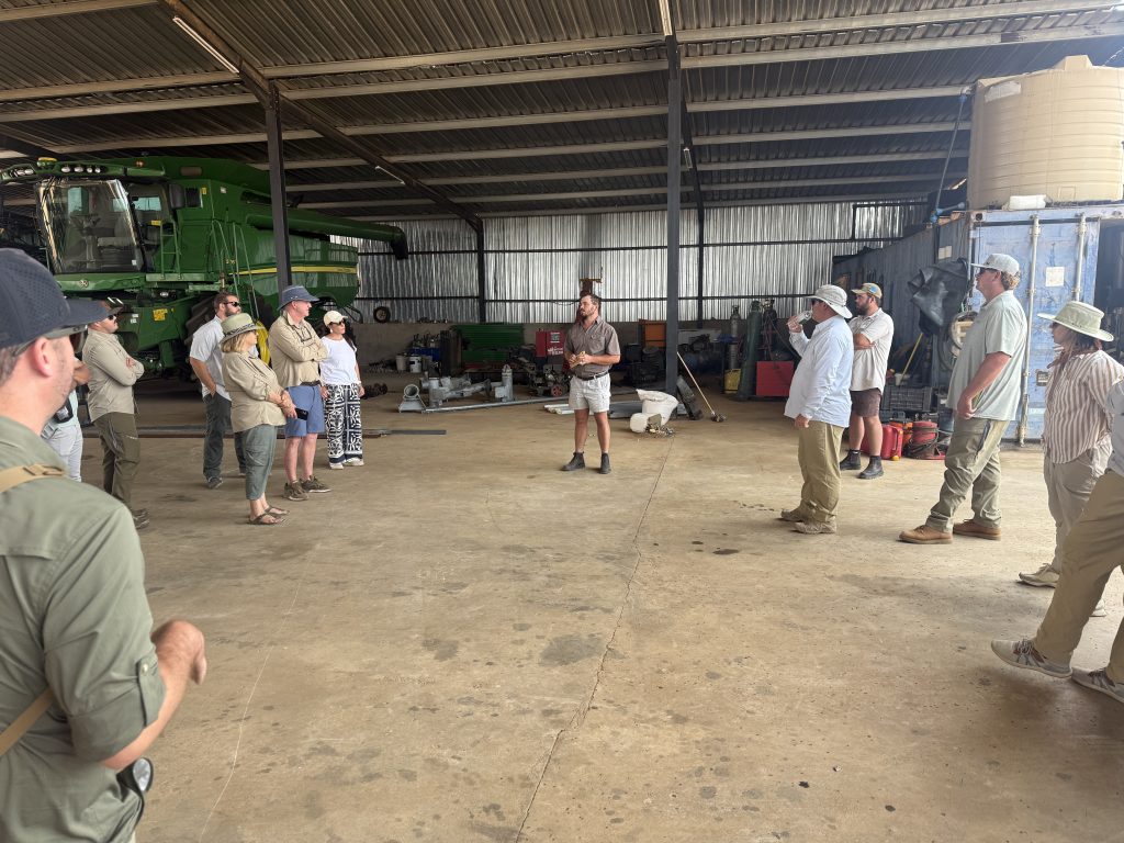 Our final stop took us to Eastland Farms, where brothers Robert and Daniel are carrying forward the pioneering work of their father, one of Pandamatenga’s original farmers. As the first second-generation growers in the region, they carry a dual responsibility: to honor their roots while shaping the future. Their innovative leap into irrigated crops — tomatoes, onions, and peppers — is expanding what is possible for farmers here and encouraging others to consider new methods. That same spirit of entrepreneurship runs in the family. Years ago, their mother Tracy saw opportunity where others did not and established Wild Tracks Eco Lodge, a hospitality venture that has become a vital employer and a celebrated destination in northern Botswana. Together with her daughter-in-law, Chennely, Tracy has created a place where visitors feel welcomed and cared for. Their leadership demonstrates that agriculture and tourism, when rooted in respect for people and place, can flourish side by side.
