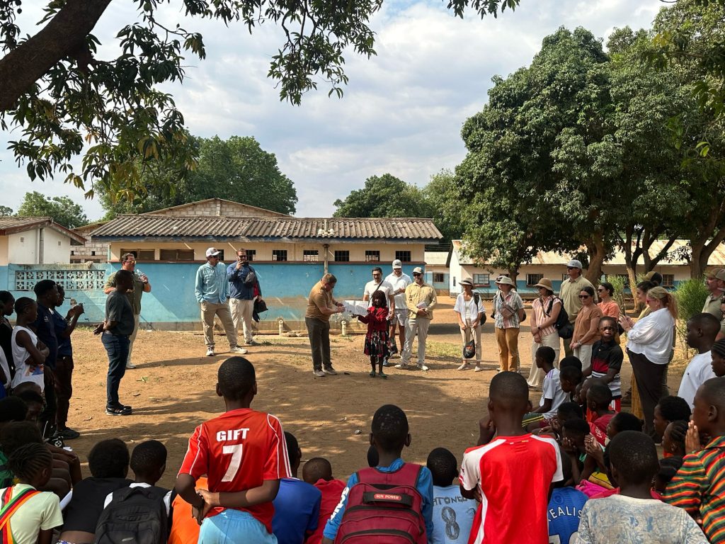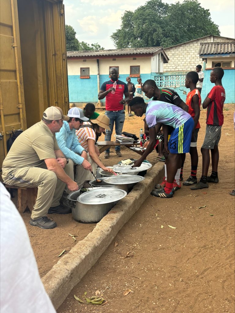 In the afternoon, we shifted from craft to play — from the quiet concentration of a sewing machine to the spirited shouts of a dusty soccer pitch. At Play It Forward, young leaders are building community through sport, mentorship, and creative expression. Nearly half of Zambia’s population is under 18, and many children navigate environments where belonging and safety and opportunity are not guaranteed. Yet here, laughter cut through the heat, confidence grew with every pass of the ball and older youth guided the younger ones with pride and a sense of responsibility. The coaches — many of whom once stood on that same field as kids — now stand as role models, proof that leadership does not require permission. “Play can be a doorway into purpose, confidence, and belonging,” one staff member shared. We saw it unfold in real time.
